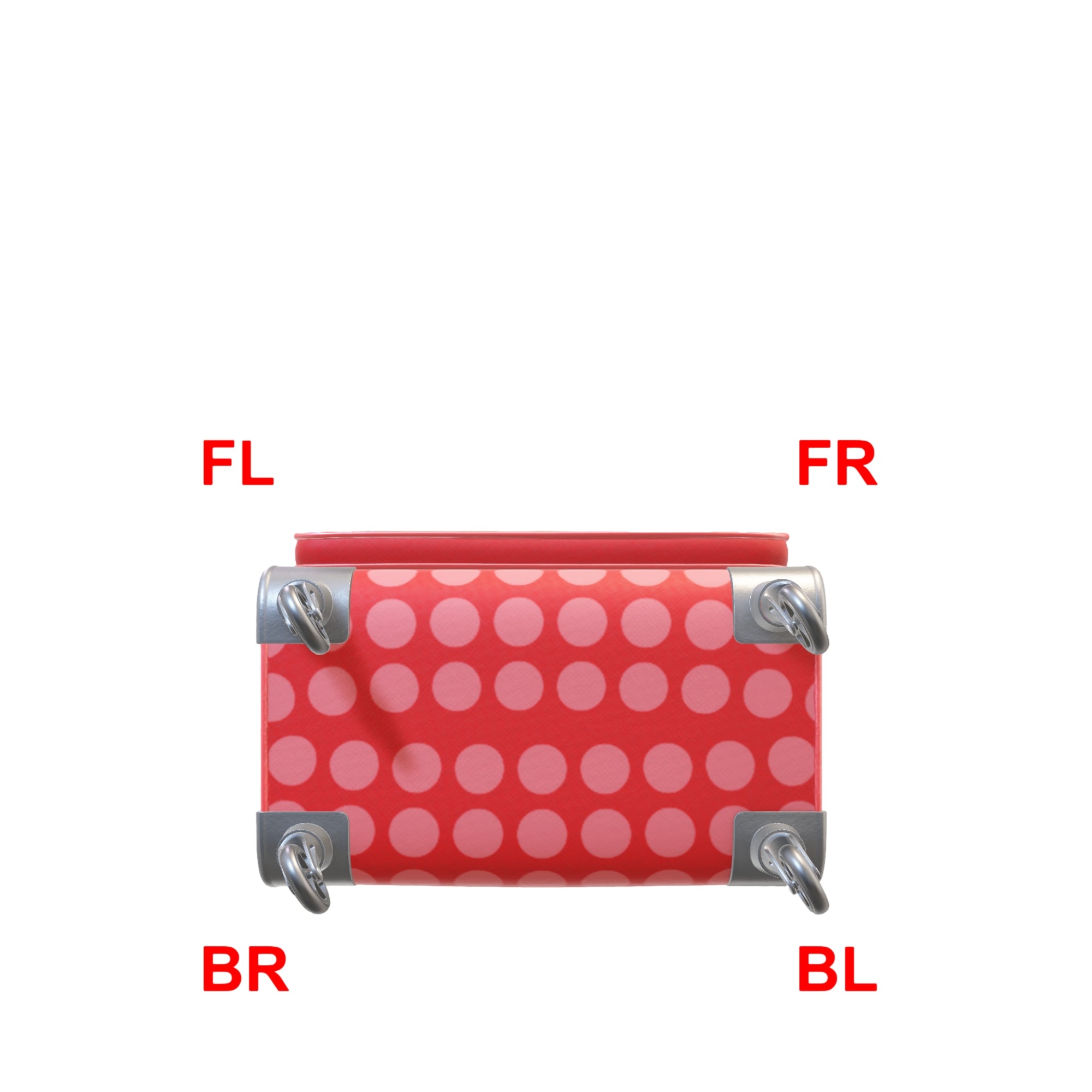 Use the images below to determine if a Front Left (FL), Front Right (FR) or Backside Left (BL) or Backside Right (BR) wheel needs replacement. The second image shows the suitcase bottom when lying on its backside with the logo facing upwards. Pay attention to the wheel orientation in the product description above.