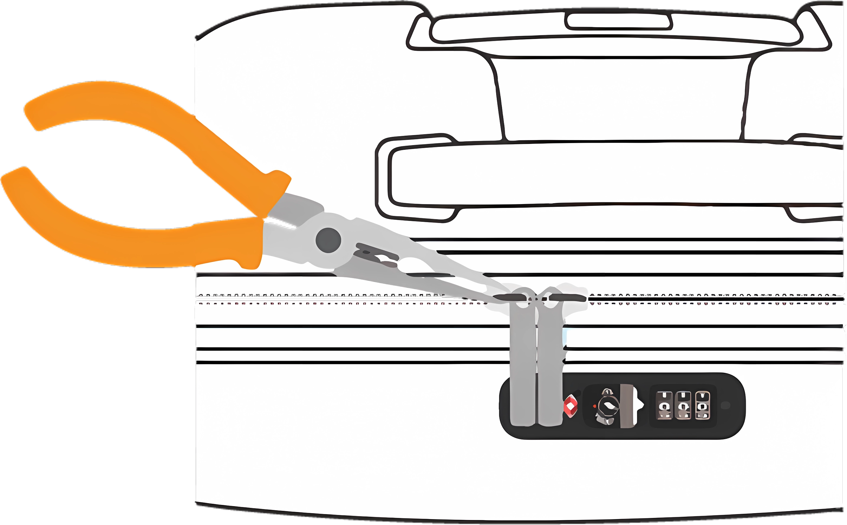 Pour une réparation combinée de la serrure et du Tirette à Fermeture Éclair, vous devez d'abord retirer les tirettes de fermeture éclair existantes (qui sont encore attachées à la serrure) en suivant les instructions ci-dessous, ce qui vous permettra d'ouvrir la valise pour accéder à la serrure de l'intérieur. Ensuite, vous pouvez suivre notre guide de remplacement de la serrure pour échanger la serrure à combinaison et revenir à cette page pour réinsérer les nouvelles tirettes de fermeture éclair. Comme les tirettes de fermeture éclair d'origine ne peuvent pas être retirées de la serrure, de nouvelles tirettes de fermeture éclair doivent être achetées.