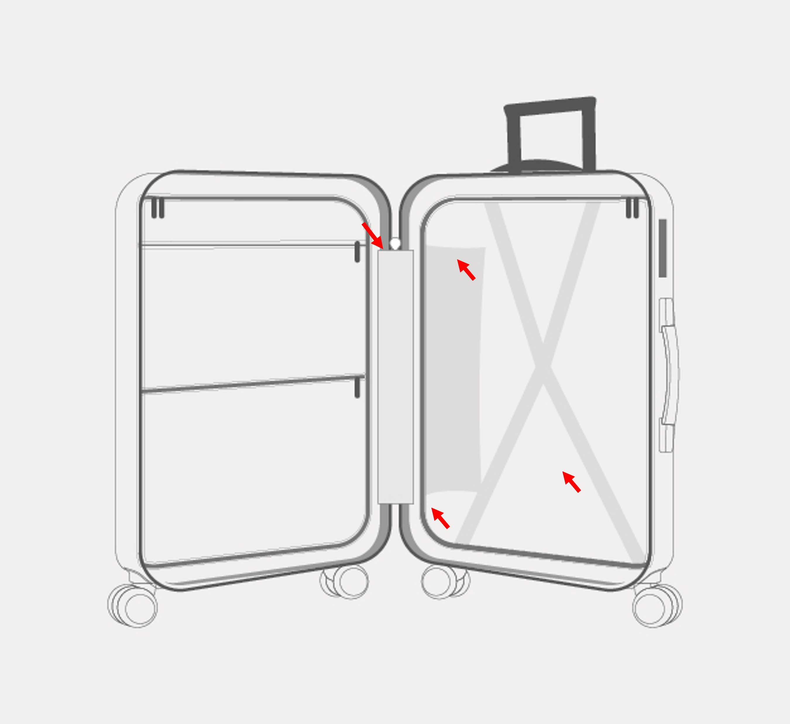 - Produits âgés de moins de 15 ans : Dans ce cas, le produit a probablement été vendu dans certaines régions d'Asie ou du Moyen-Orient. Veuillez contacter notre service client pour savoir quelles pièces détachées conviennent à votre valise.