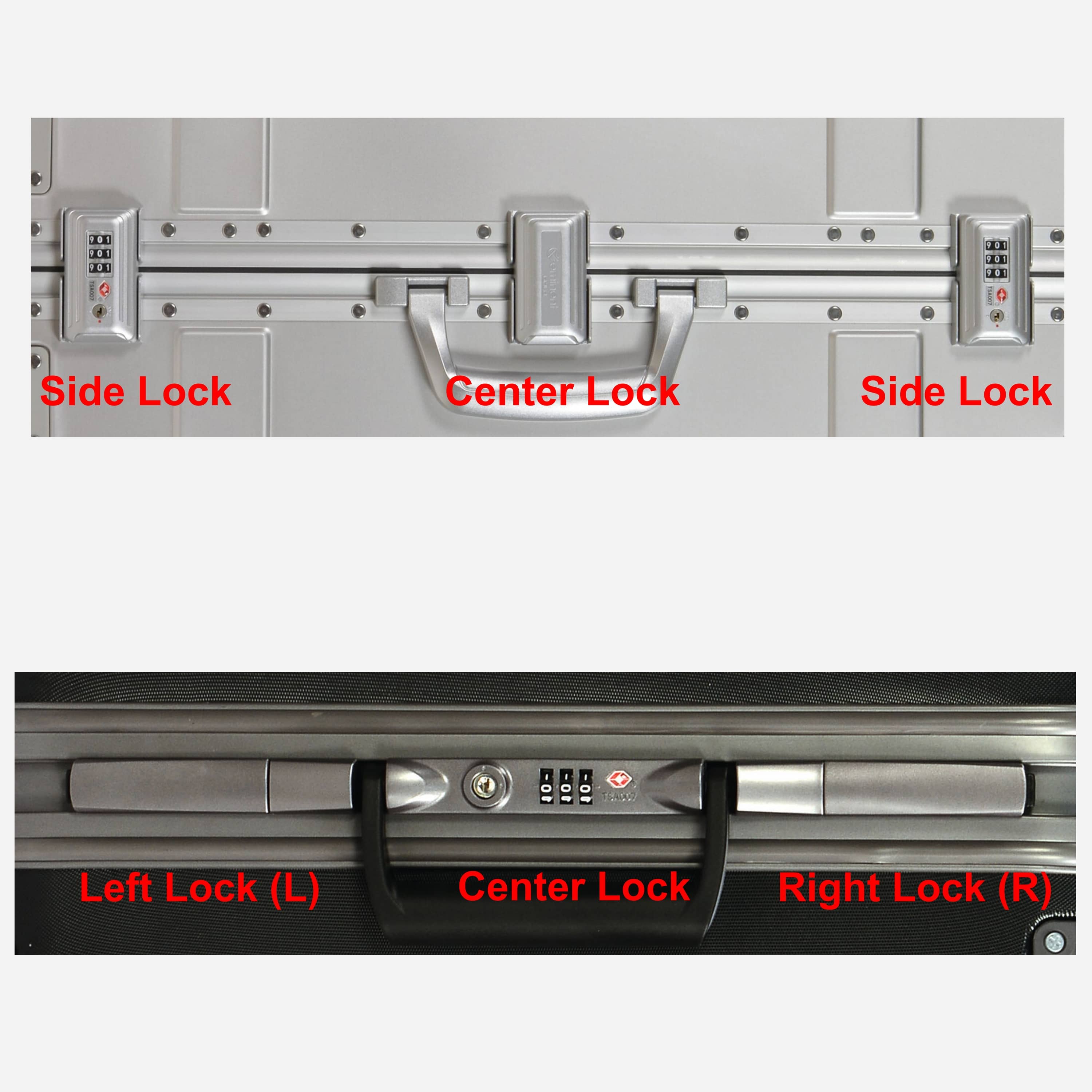 Comme on peut le voir sur l'image, les verrous latéraux peuvent être identiques ou avoir une orientation différente selon le modèle de la valise.