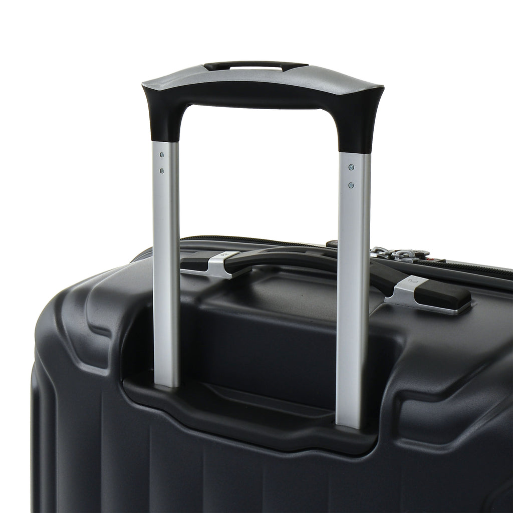Le Poignée Télescopique en tant que pièce de rechange se compose de la poignée de traction sur le dessus, des deux tubes et du support qui connecte la poignée à la coque.