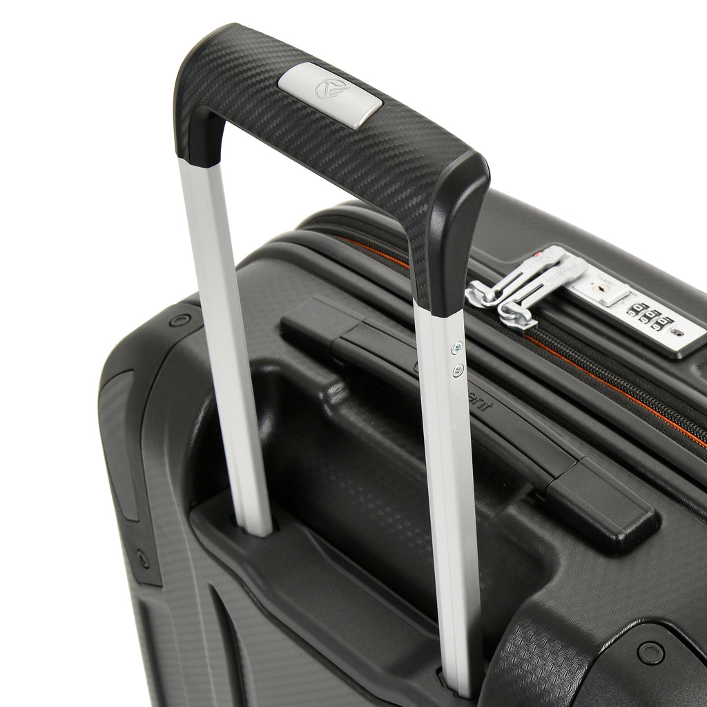 Le Poignée Télescopique en tant que pièce de rechange se compose de la poignée de traction sur le dessus, des deux tubes et du support qui connecte la poignée à la coque.