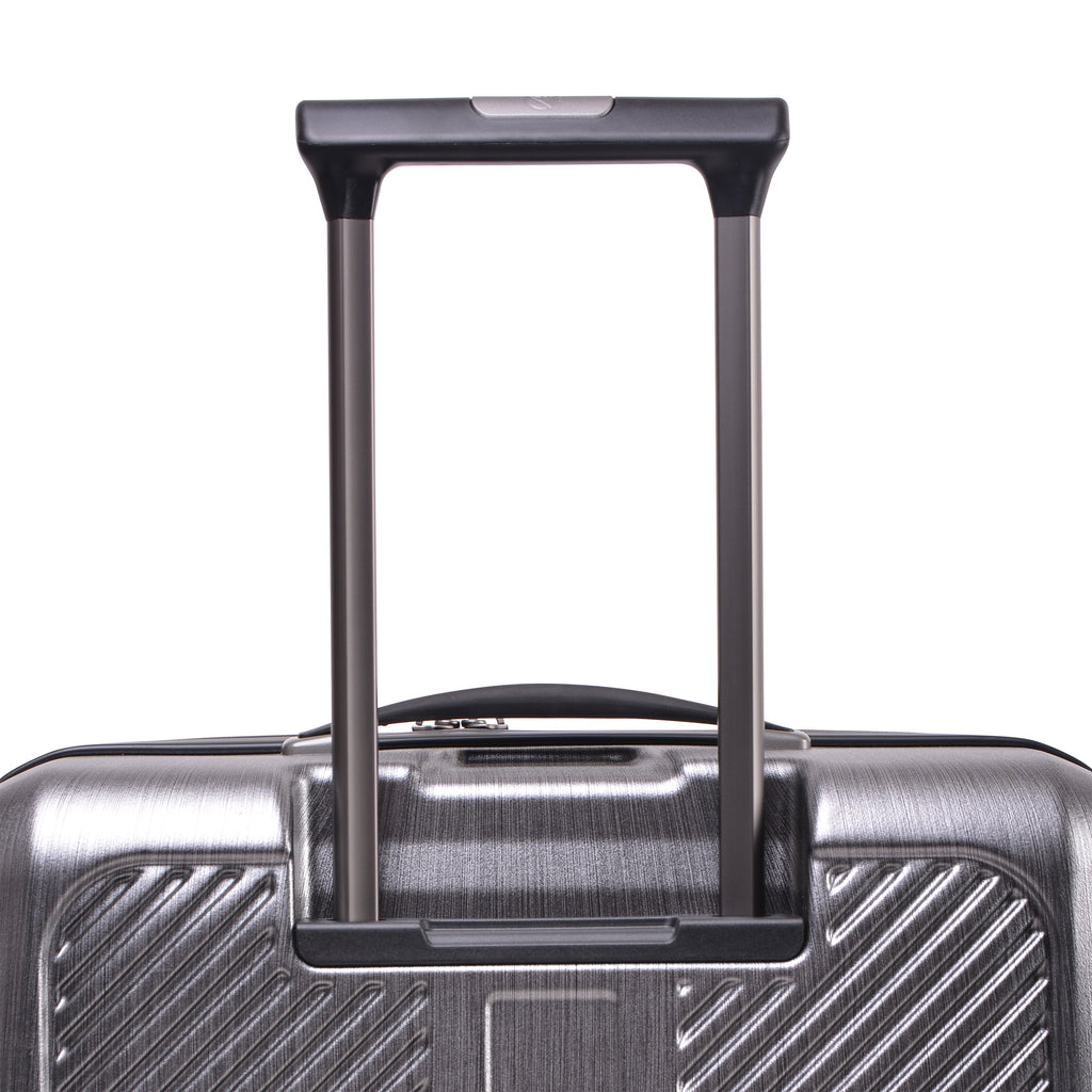 Le Poignée Télescopique en tant que pièce de rechange se compose de la poignée de traction sur le dessus, des deux tubes et du support qui connecte la poignée à la coque.