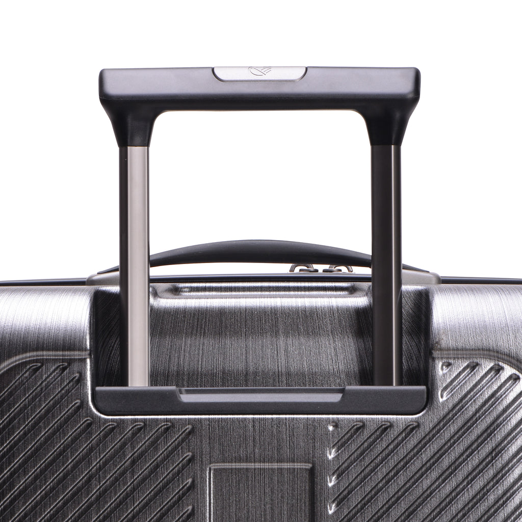 Le Poignée Télescopique en tant que pièce de rechange se compose de la poignée de traction sur le dessus, des deux tubes et du support qui connecte la poignée à la coque.