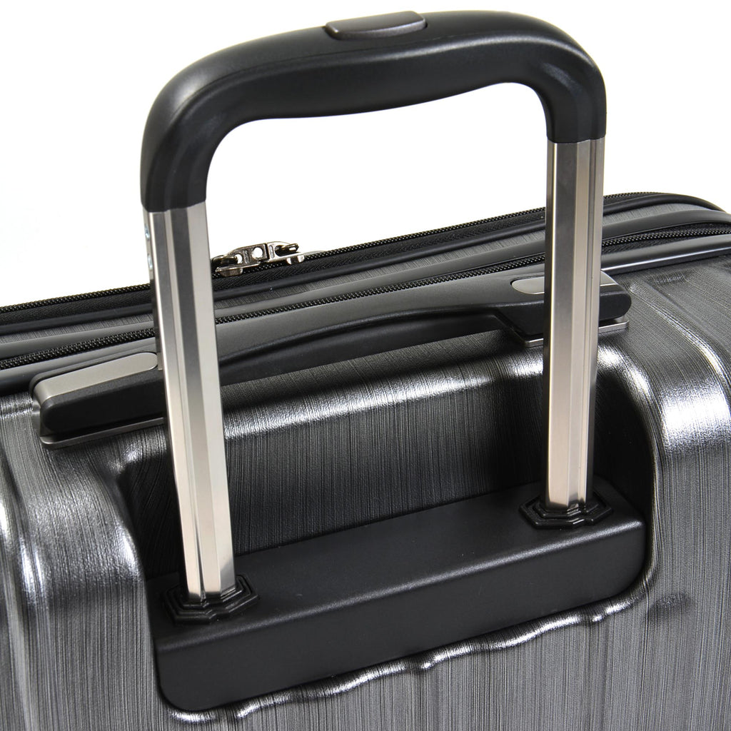 Le Poignée Télescopique en tant que pièce de rechange se compose de la poignée de traction sur le dessus, des deux tubes et du support qui connecte la poignée à la coque.