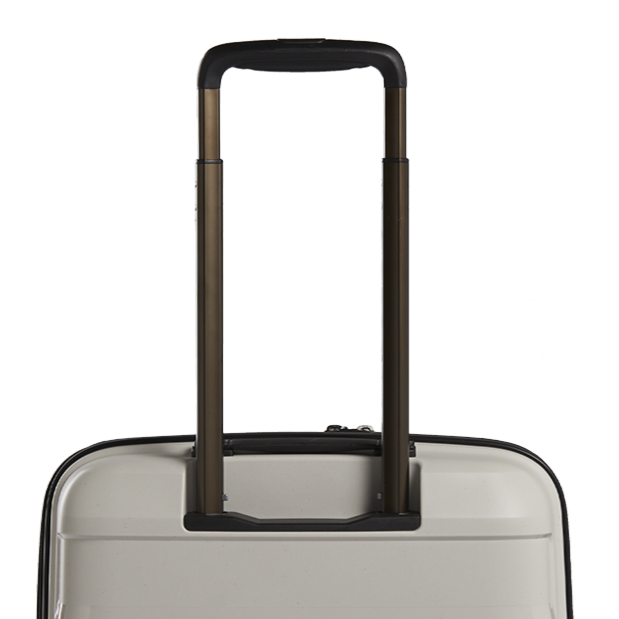 Le Poignée Télescopique en tant que pièce de rechange se compose de la poignée de traction sur le dessus, des deux tubes et du support qui connecte la poignée à la coque.