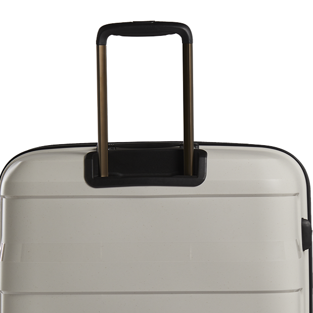 Le Poignée Télescopique en tant que pièce de rechange se compose de la poignée de traction sur le dessus, des deux tubes et du support qui connecte la poignée à la coque.